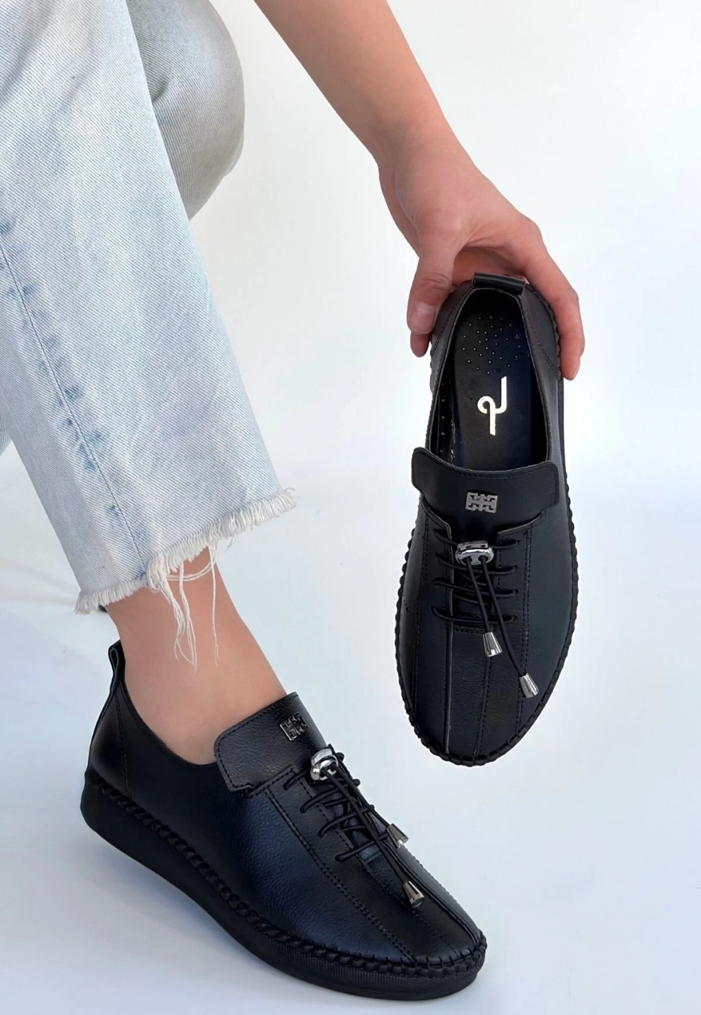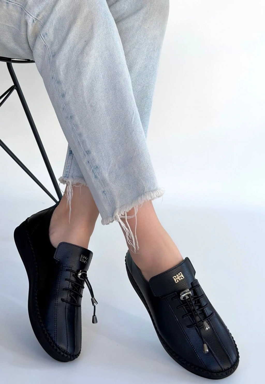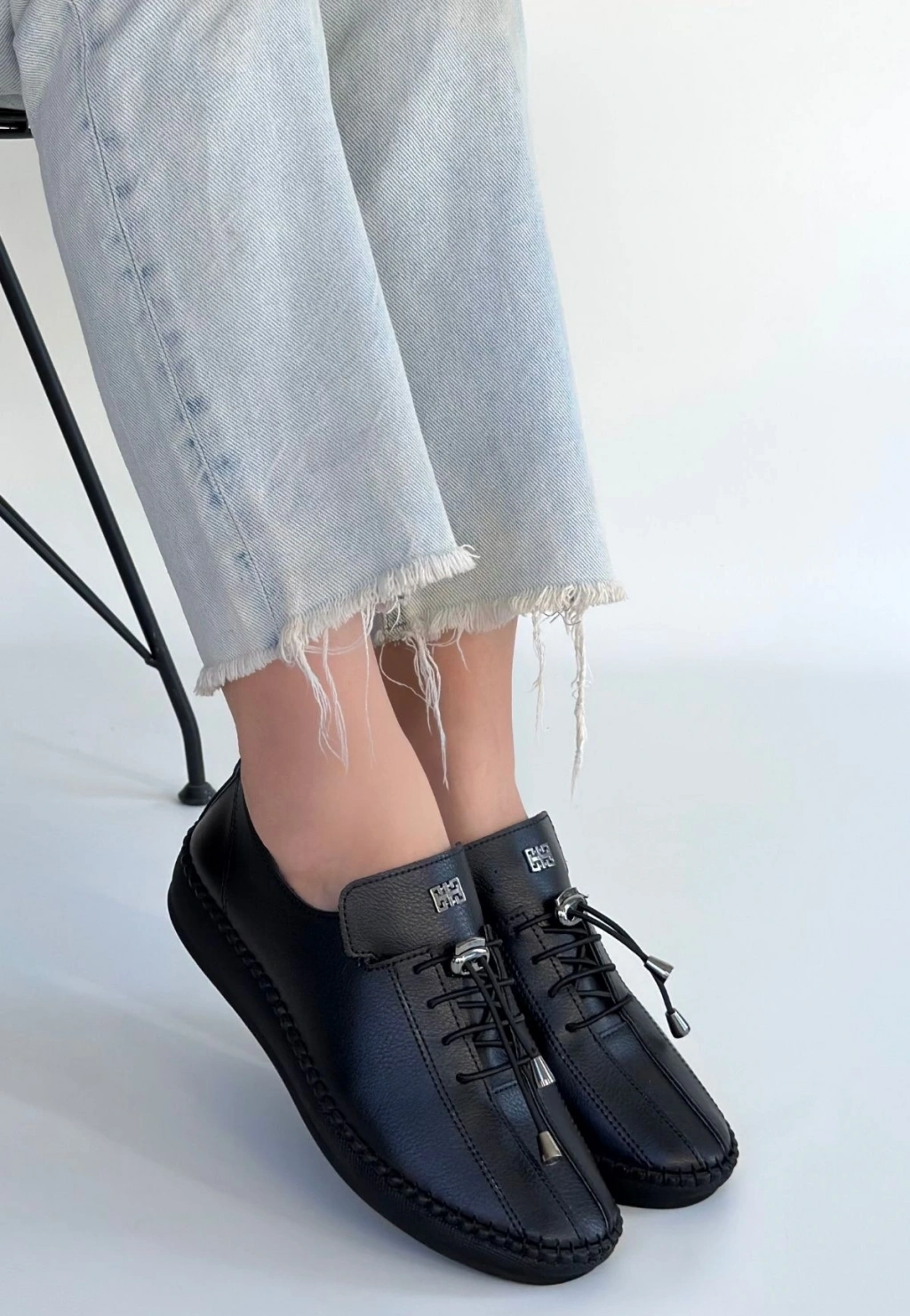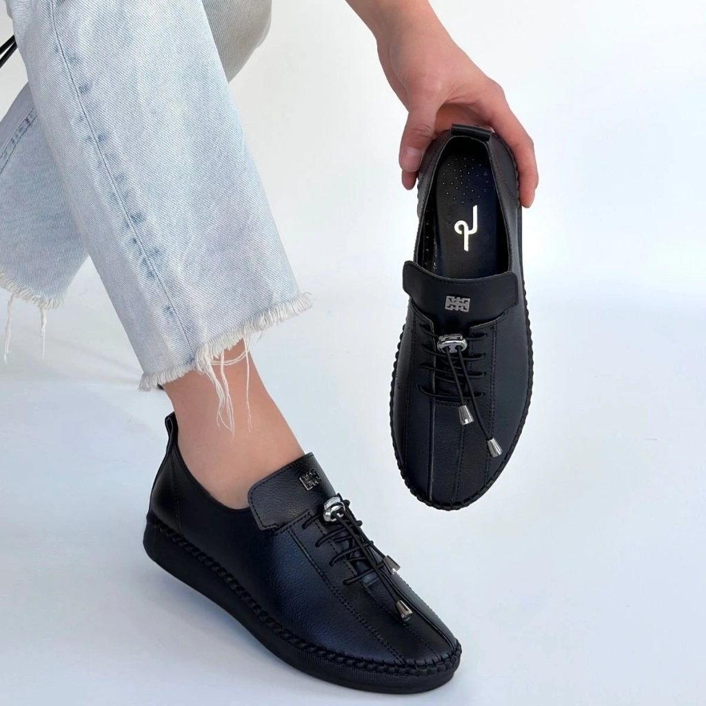 Mopin Siyah Deri Bağcıklı Spor Ayakkabı