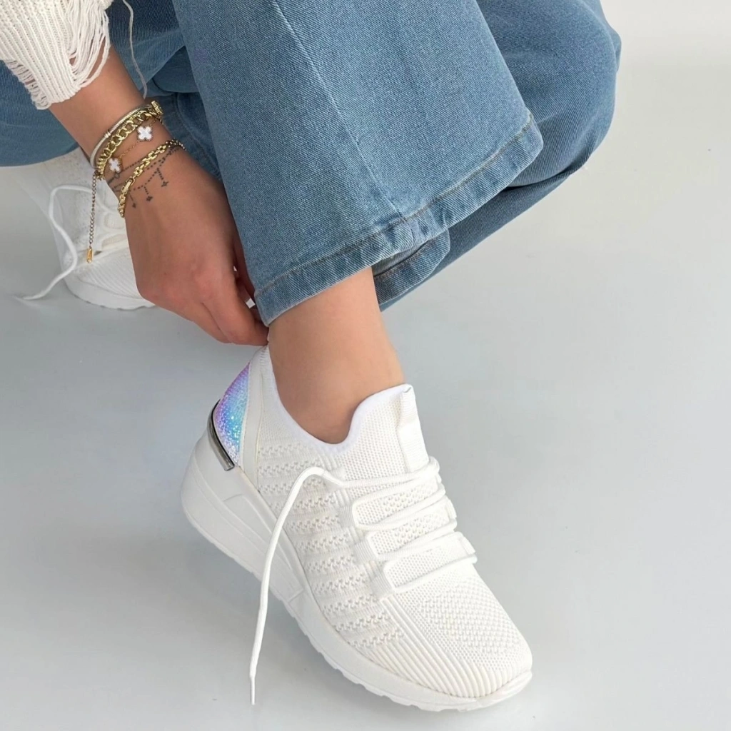 Weor Beyaz Triko Bağcıklı Spor Ayakkabı