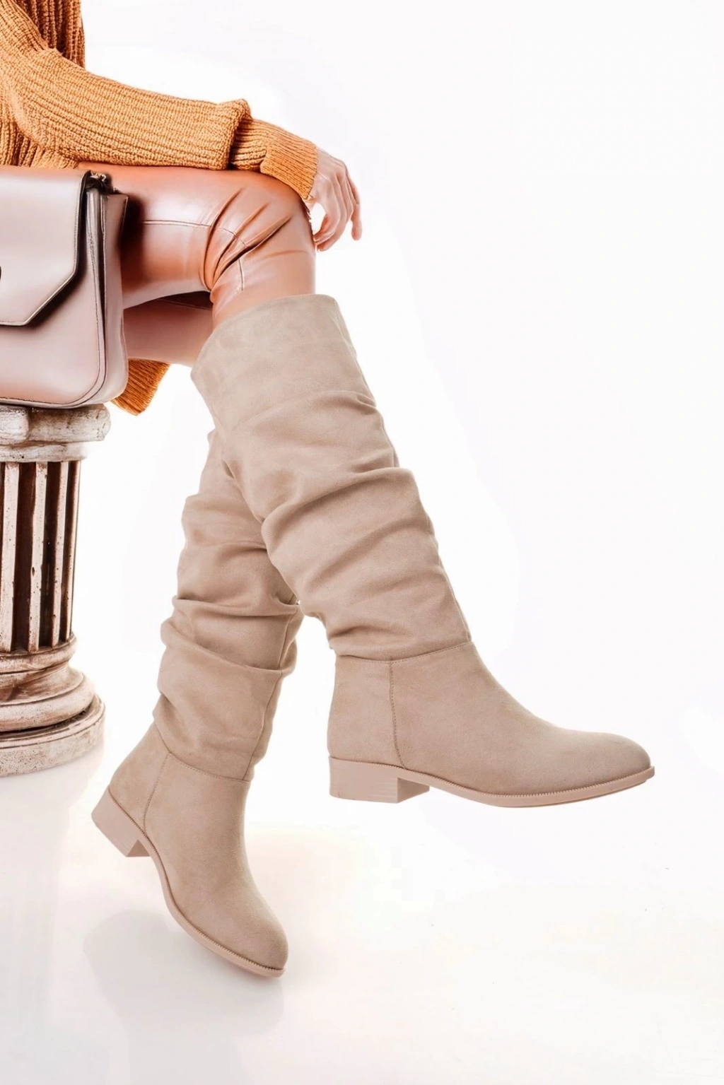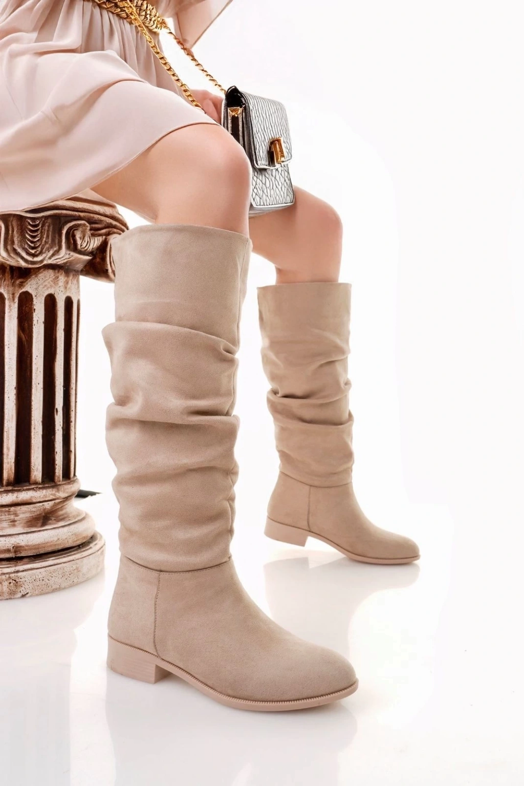 Winda Bej Süet Körüklü Çizme