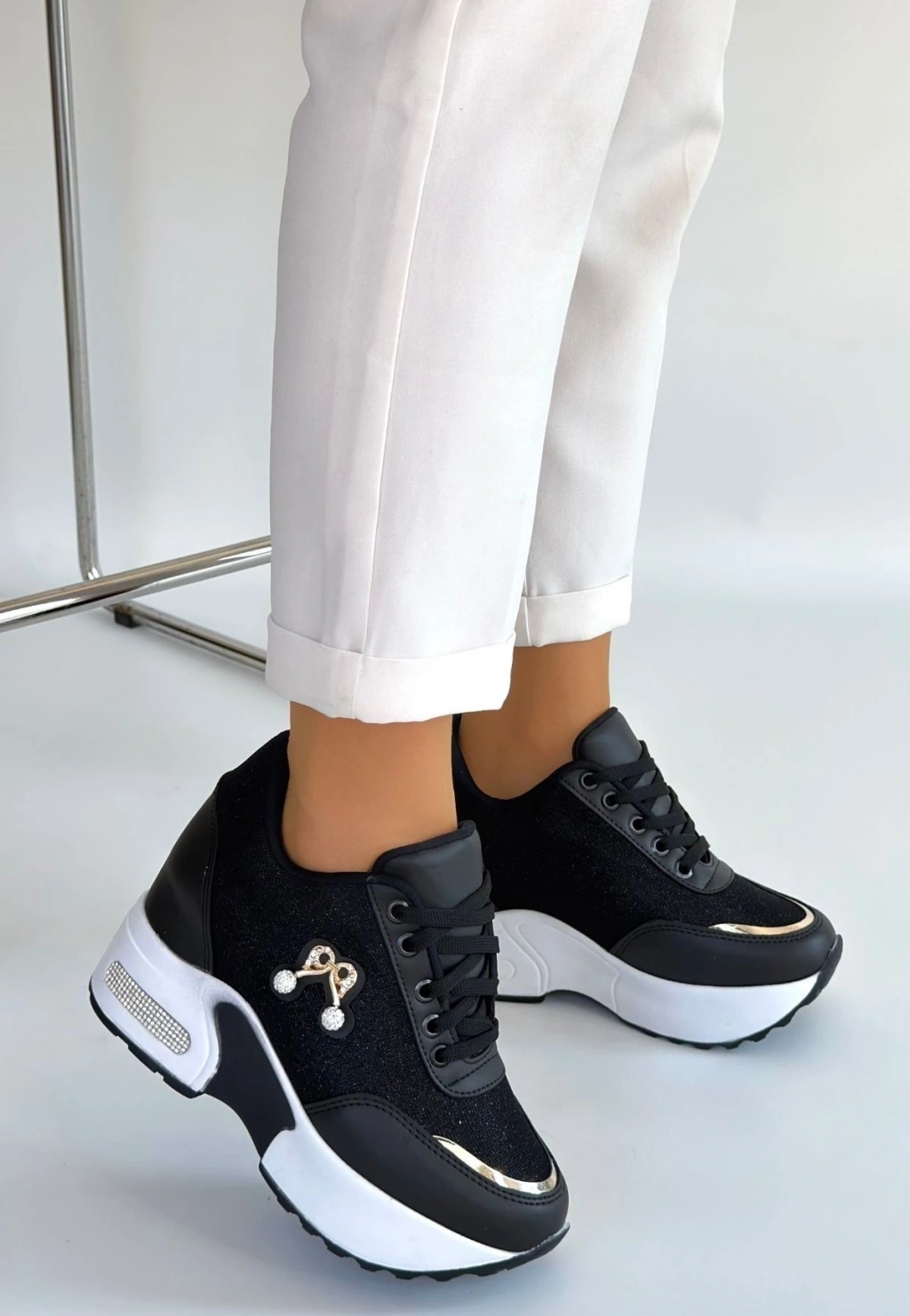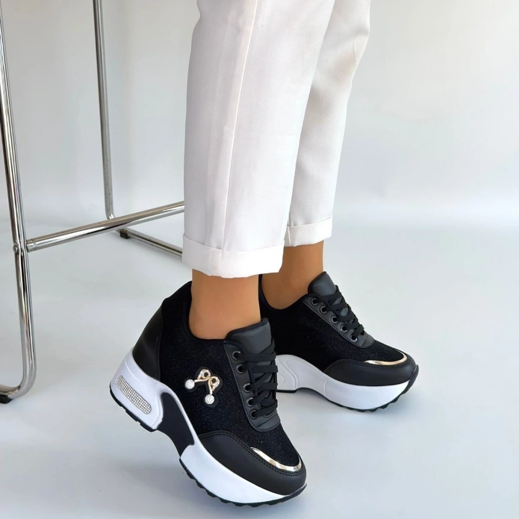 Wody Siyah Cilt Simli Bağcıklı Spor Ayakkabı