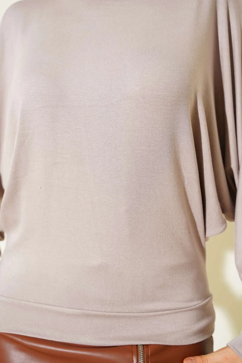 Omzu Açık Fermuarlı Bluz Mürdüm T4330