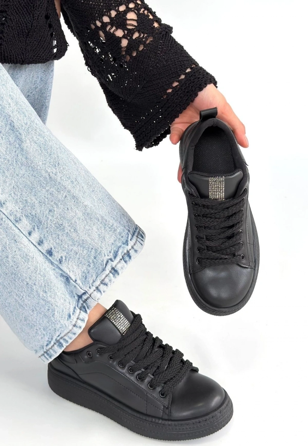 Mopin Siyah Deri Bağcıklı Spor Ayakkabı