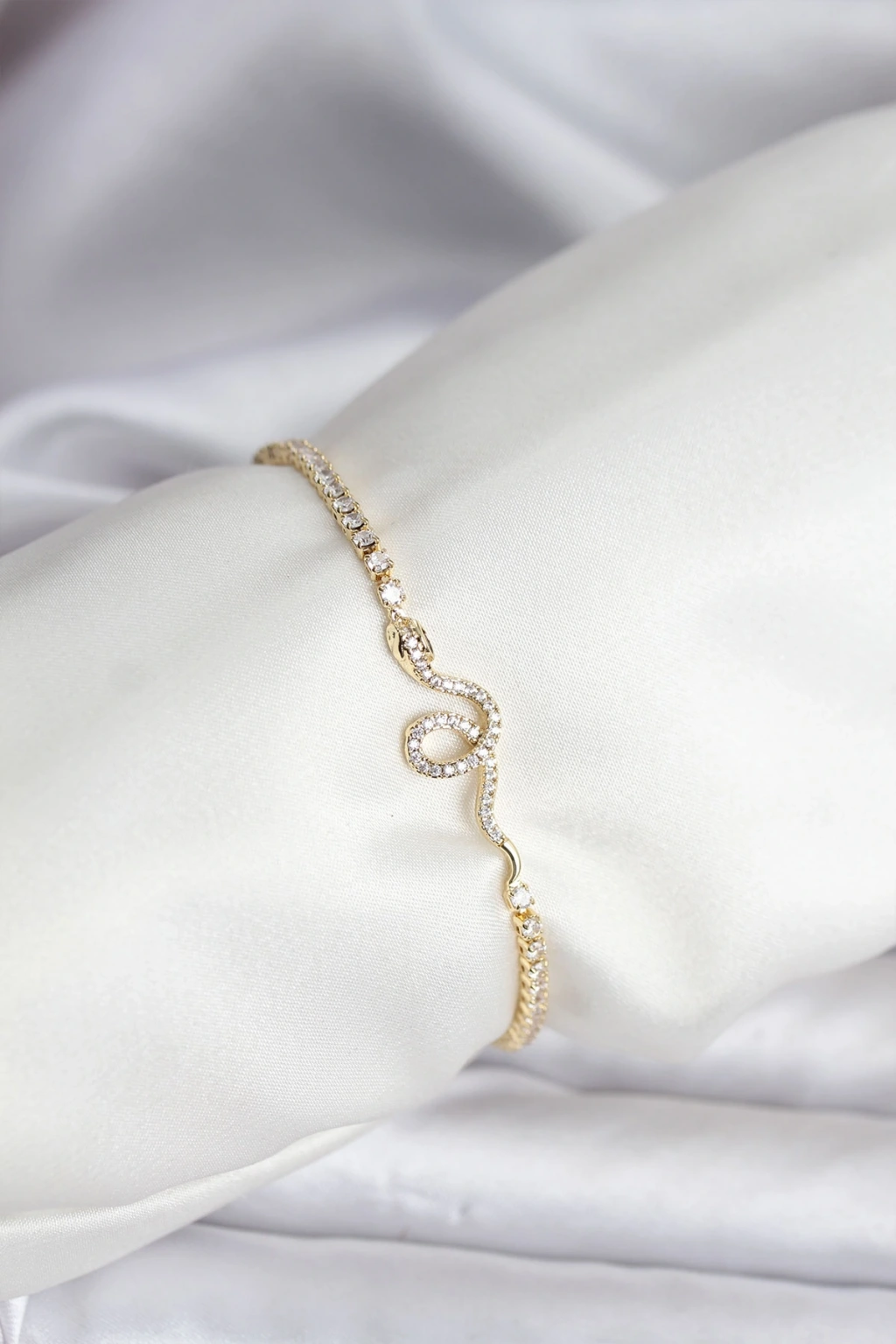 Yılan Model Zirkon Taşlı Gold Renk Pirinç Su Yolu Kadın Bileklik
