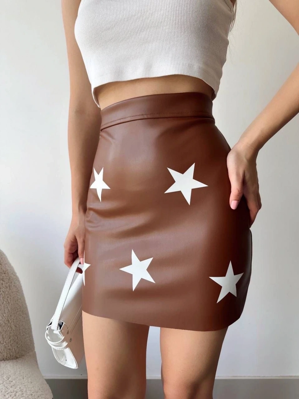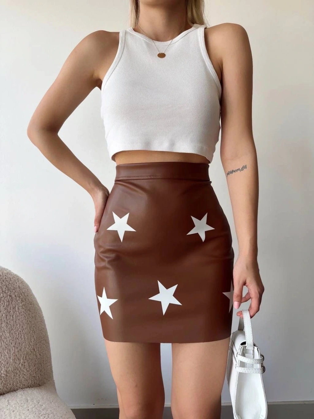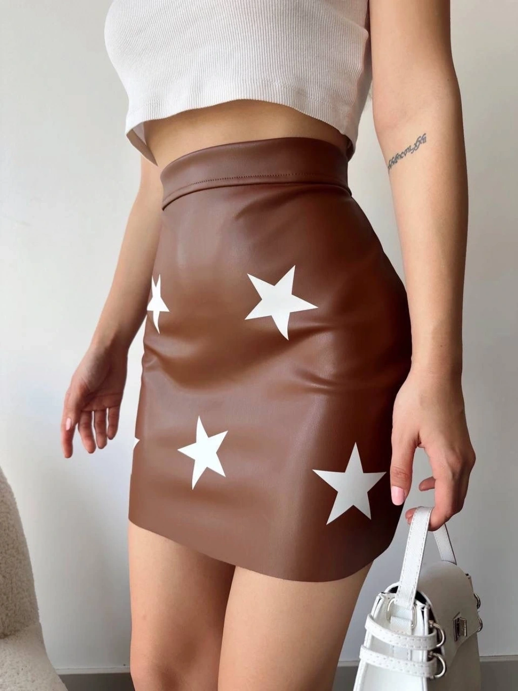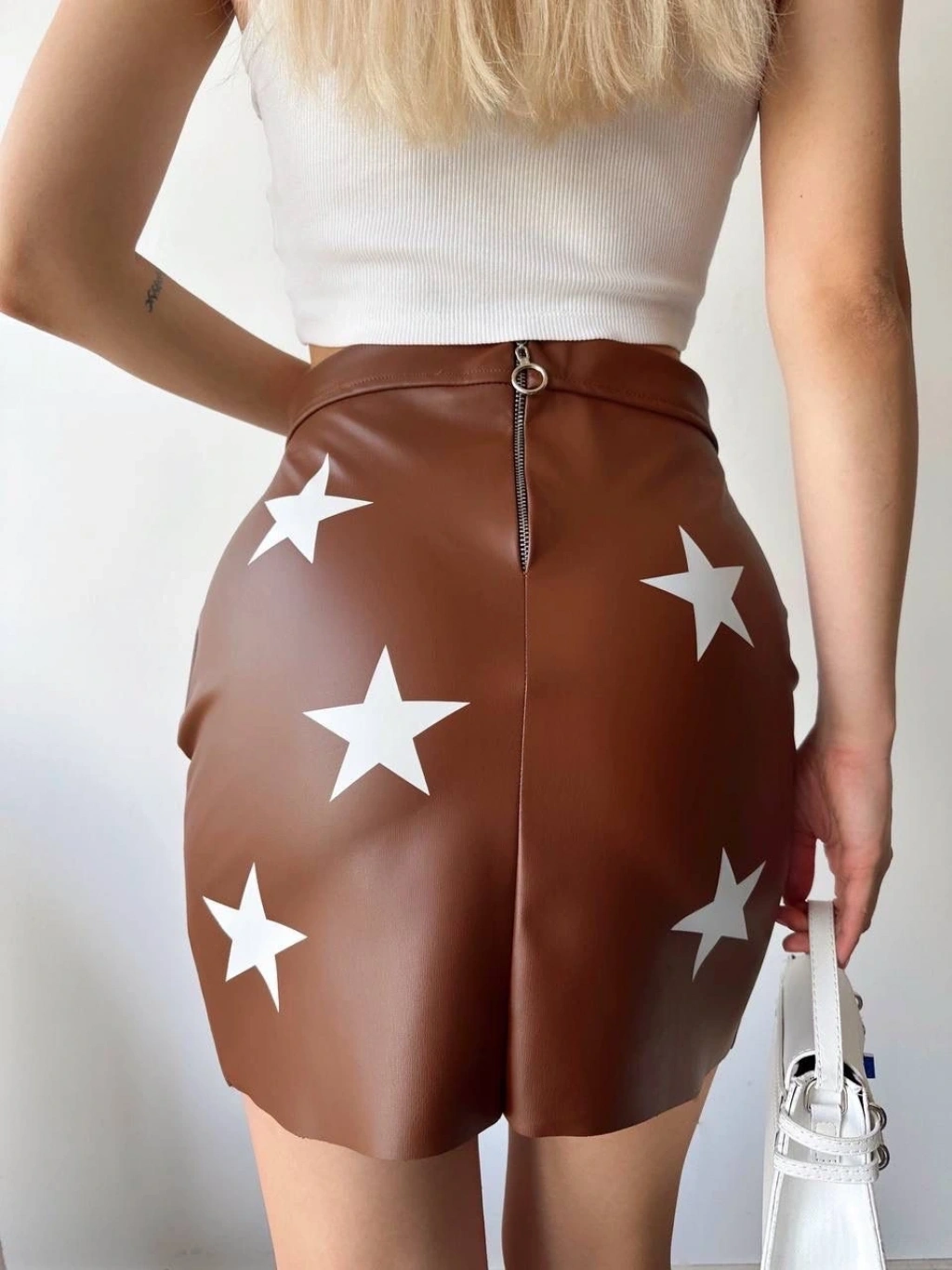 Cep detaylı oval kapaklı deri etek kahve h240048
