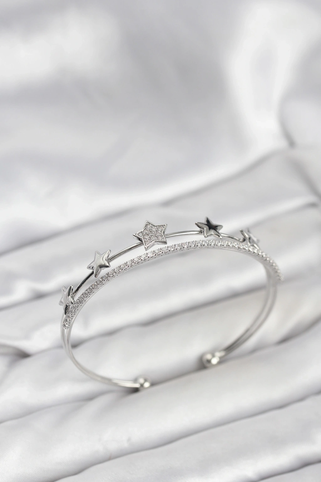 Yıldız Model Gümüş Renk Pirinç Kadın Bileklik
