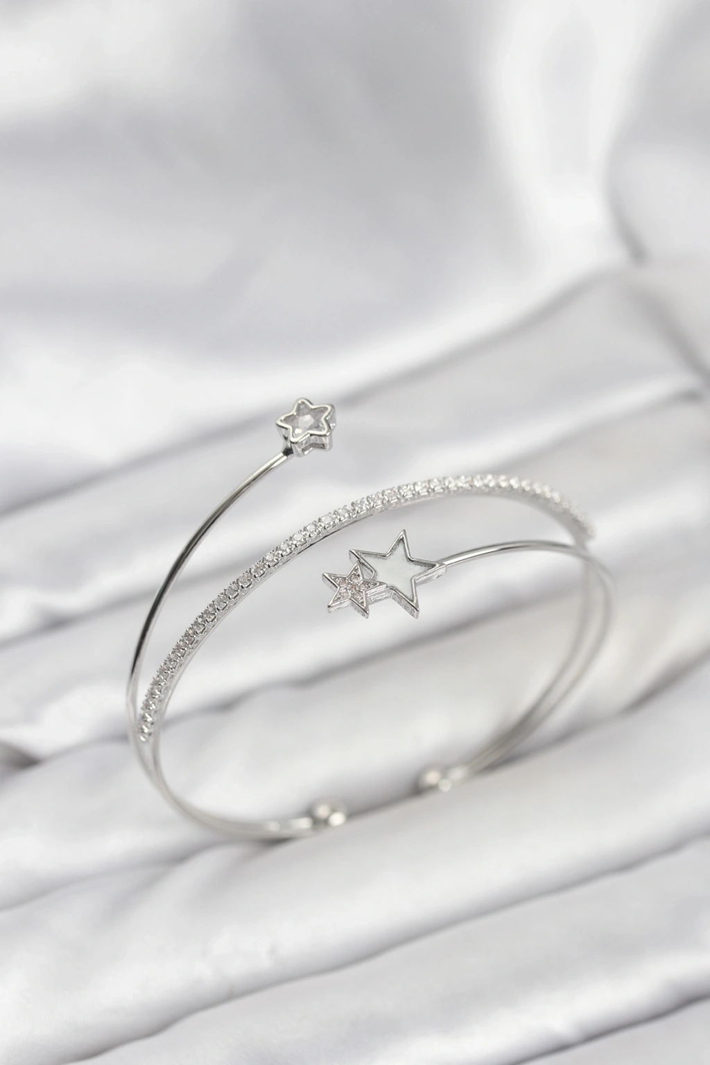 Yıldızlı Model Pirinç Gümüş Renk Kadın Bileklik