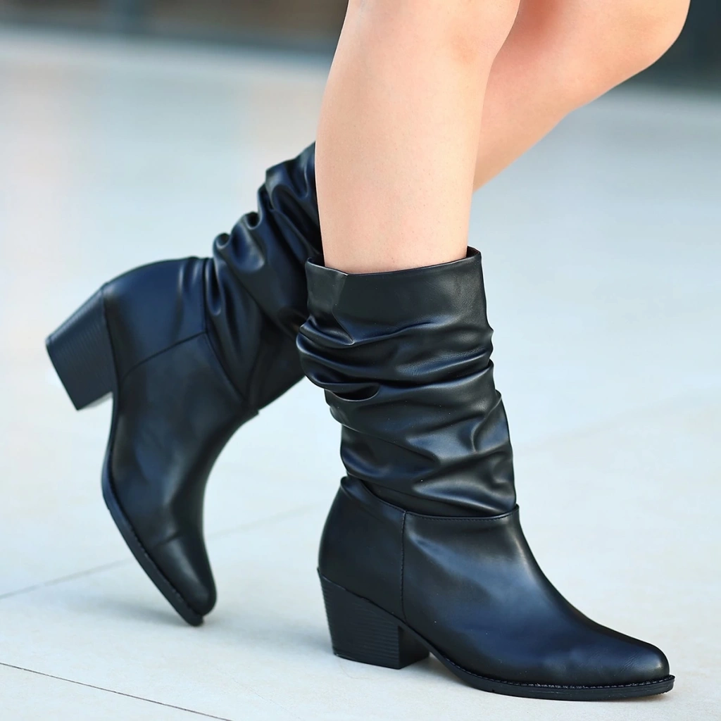 Kanda Siyah Cilt Topuklu Bot
