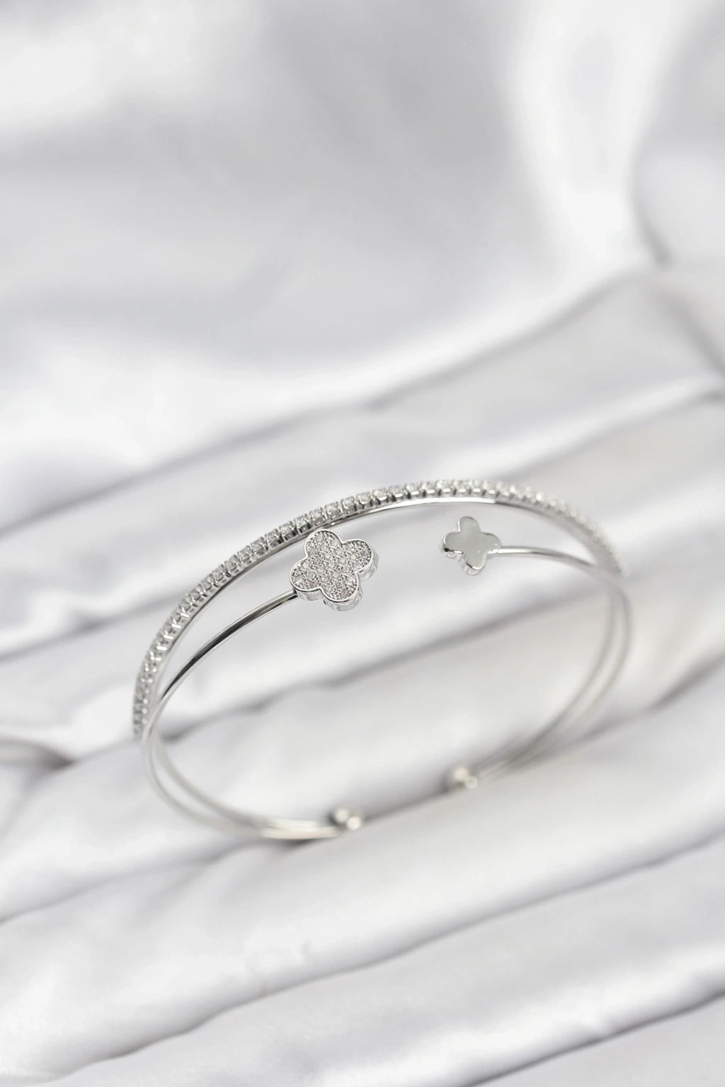 Yonca Model Pirinç Gümüş Renk Kadın Bileklik