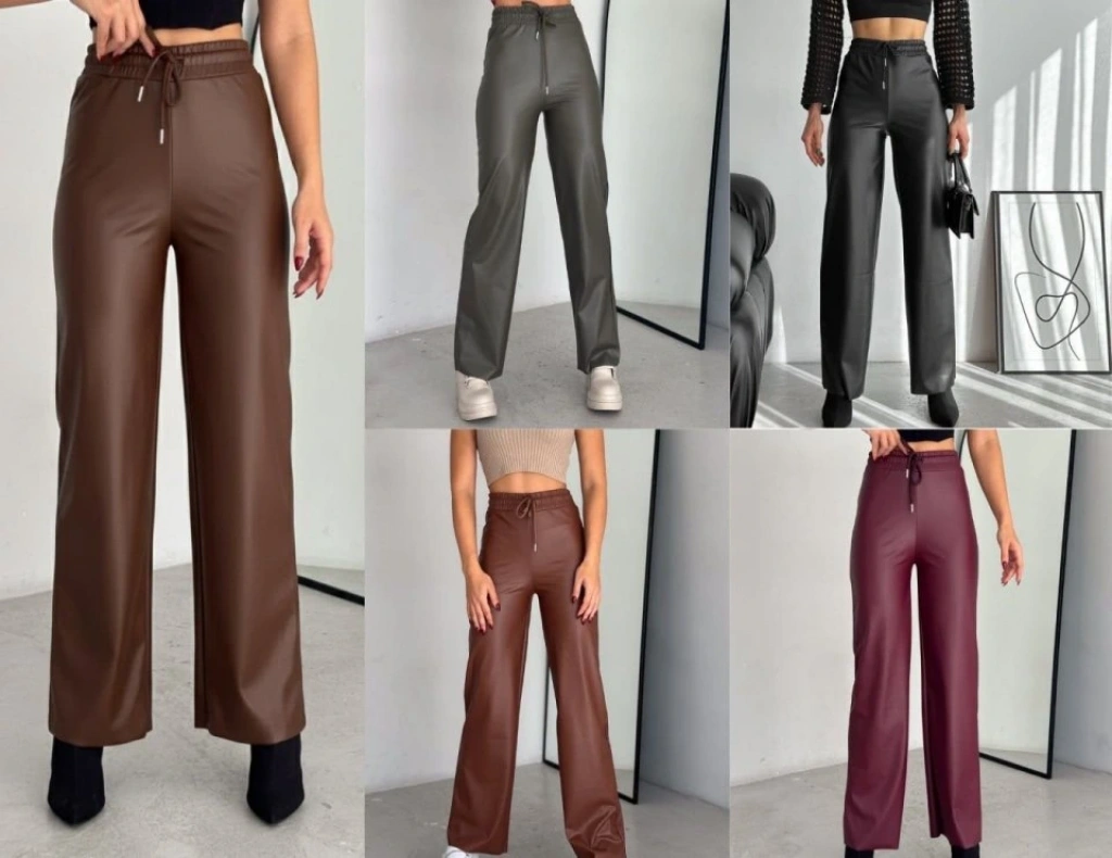Yüksek Bel Geniş Paça Içi şardonlu Deri Pantolon.