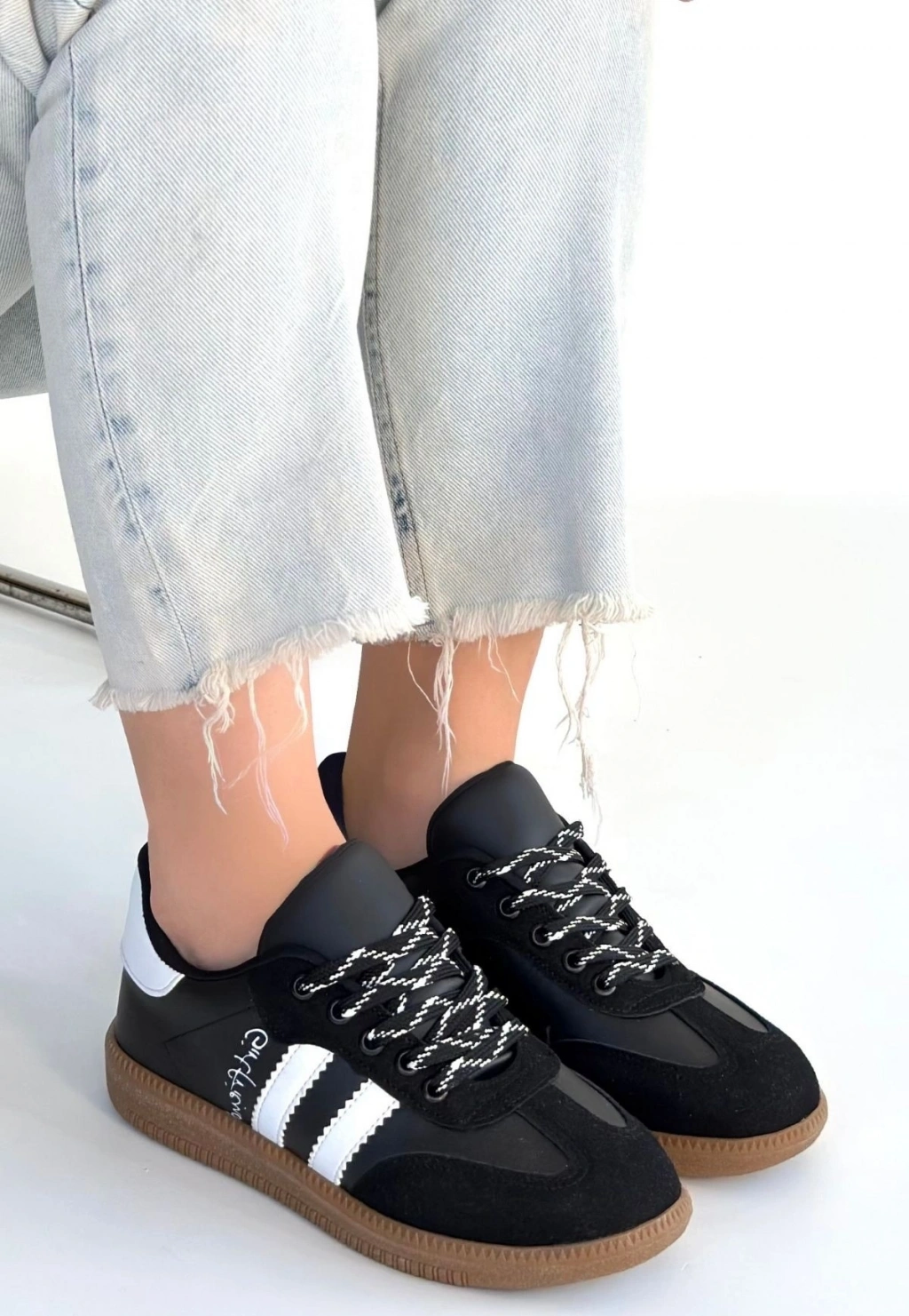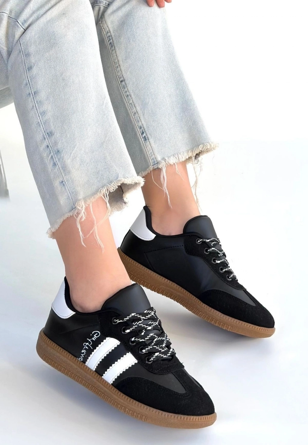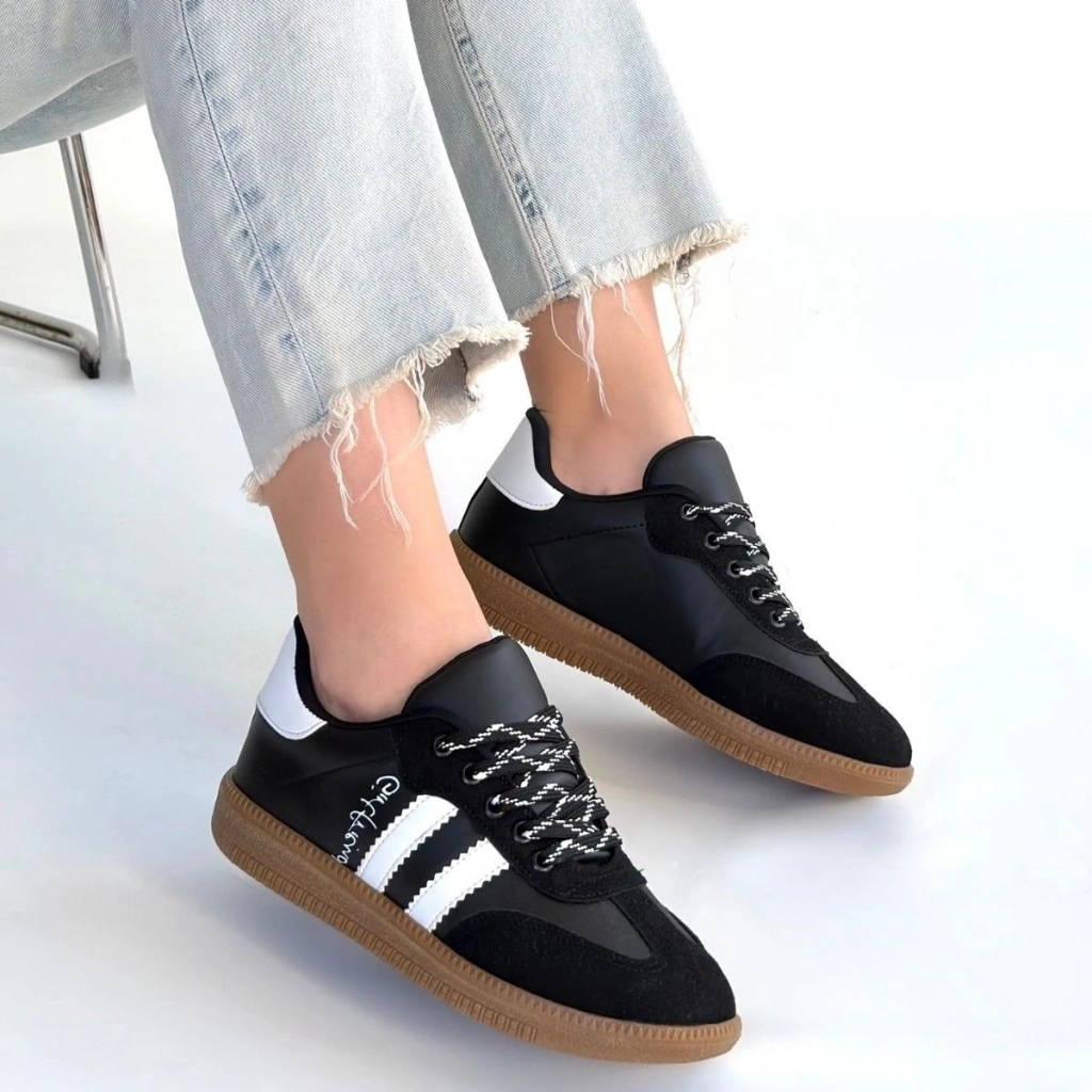 Zerti Siyah Cilt Bağcıklı Spor Ayakkabı