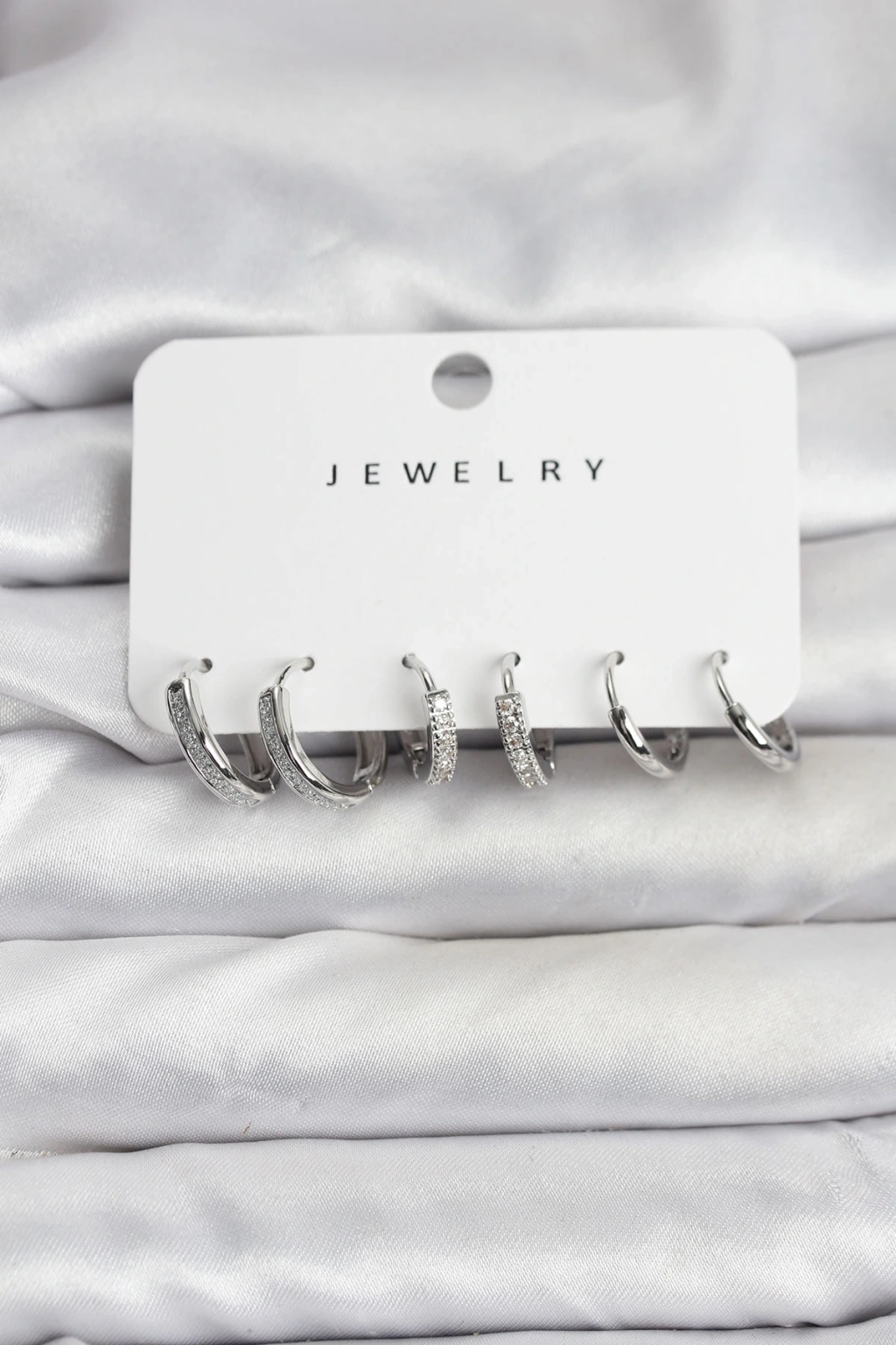 Zirkon Taşlı Gümüş Renk Pirinç Kadın Küpe Seti