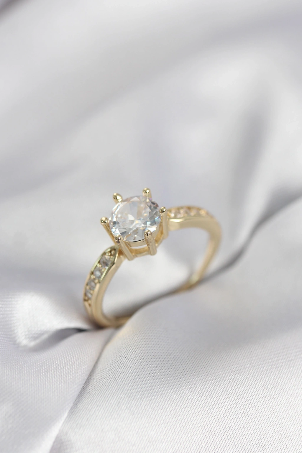 Zirkon Taşlı Tek Taş Model Gold Renk Kadın Yüzük